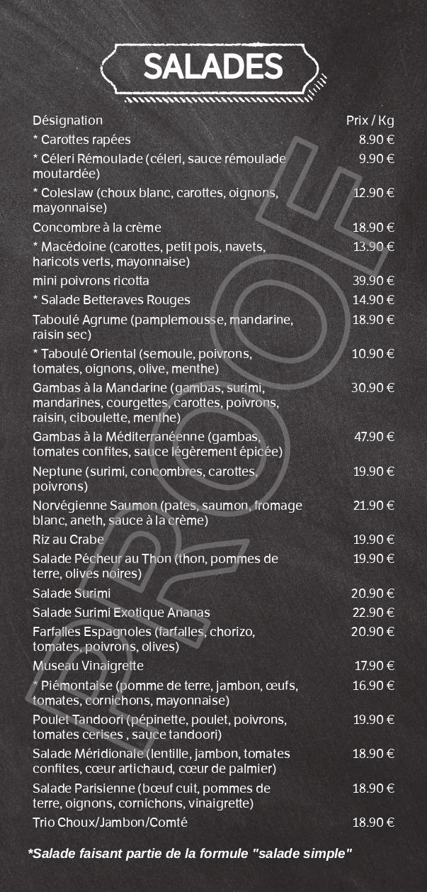 -Les Plats traiteurs sont fabriqués maison (cf carte Traiteur)